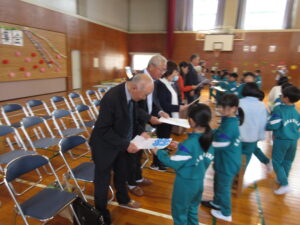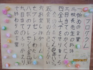 4月27日(月)に金山っ子を守り育てる会のみなさんとの対面式を行いました。地域から金山っ子を守り育てる会のみなさんが来てくださり、一緒にゲームをしたり、子供たちが作ったプレゼントを受け取っていただいたりしました。いつも子供たちを見守ってくださってありがとうございます。これからも子供たちを温かく見守り、安全を守ってくださいますようお力をお貸しください。よろしくお願いします。