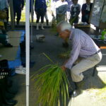 まず、稲の刈り方や刈った稲の縛り方を教えていただきました。