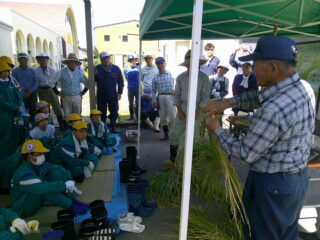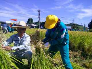 田植えでもお世話になった田んぼの先生方に、今日もお力を貸していただきました。