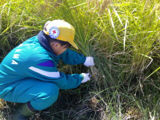 次に、実際に稲を刈ったり、刈り取った稲を縛ったりすることに挑戦しました。苦戦しながらも、最後には収穫できたことに喜びを感じているようでした。