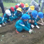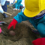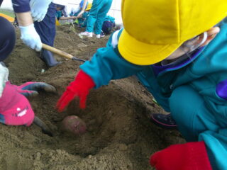 さつまいもとったどー! ー1・2年生ー 投稿日時: 2025年10月10日 投稿者: さわらび 10月9日に1・2年生でさつまいも掘りをしました。 地域のボランティアの方がたくさん来て下さり、いも掘りの手伝いとアドバイスをしてくださいました。 「こんなに大きいいもが採れた!」 「3つ、つながってる!」 「きれいに採れた!」 子供たちは出てくるいもに大興奮。 たくさん採れたので、「いもパーティーをしたいね」と話していました。 食べるのが楽しみです。
