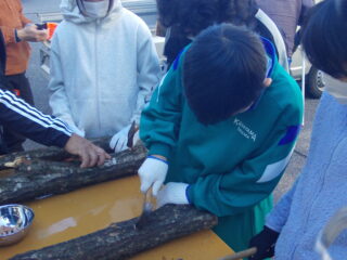 里山の会の方と学習をしました!ー5年生ー 投稿日時: 2025年11月13日 投稿者: さわらび 11月12日(水)に里山の会の方々のご協力をいただき、シイタケの菌打ち体験を行いました。 原木にドリルで穴を開け、そこに菌を打ち込む作業を一つ一つ丁寧に進めました。 さらに、チェンソーを使って木を切る体験もさせていただきました。 「チェンソーを使うのは初めてだったけど、使い方がわかってよかったです」「里山の会の方との学習を通して、改めて金山の自然を大切にしていきたいと思いました」など多くの学びがありました。 子どもたちにとって忘れられない貴重な体験となりました。