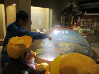 学芸員さんから、縄文時代の射水市の土地の様子や、近世から現代にかけての射水市の様子について説明を受けました。学芸員さんの話は、子供たちにとって貴重なものとなり、たくさんの発見があったようです。