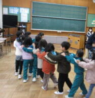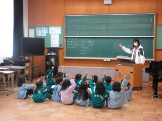 1月19日にらいおん組さん(年長児)と一緒に音楽の授業をしました。