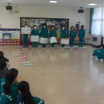 まず、これまで学校を支えてきた6年生から、次のリーダーとなる5年生へ、清掃・委員会・クラブ活動のファイルが手渡されました。