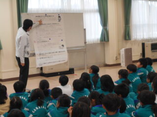劇で運動の大切さについて伝えるだけでなく、実際に生活に取り入れられそうな運動を教えてくれ、全校で楽しく取り組みました。